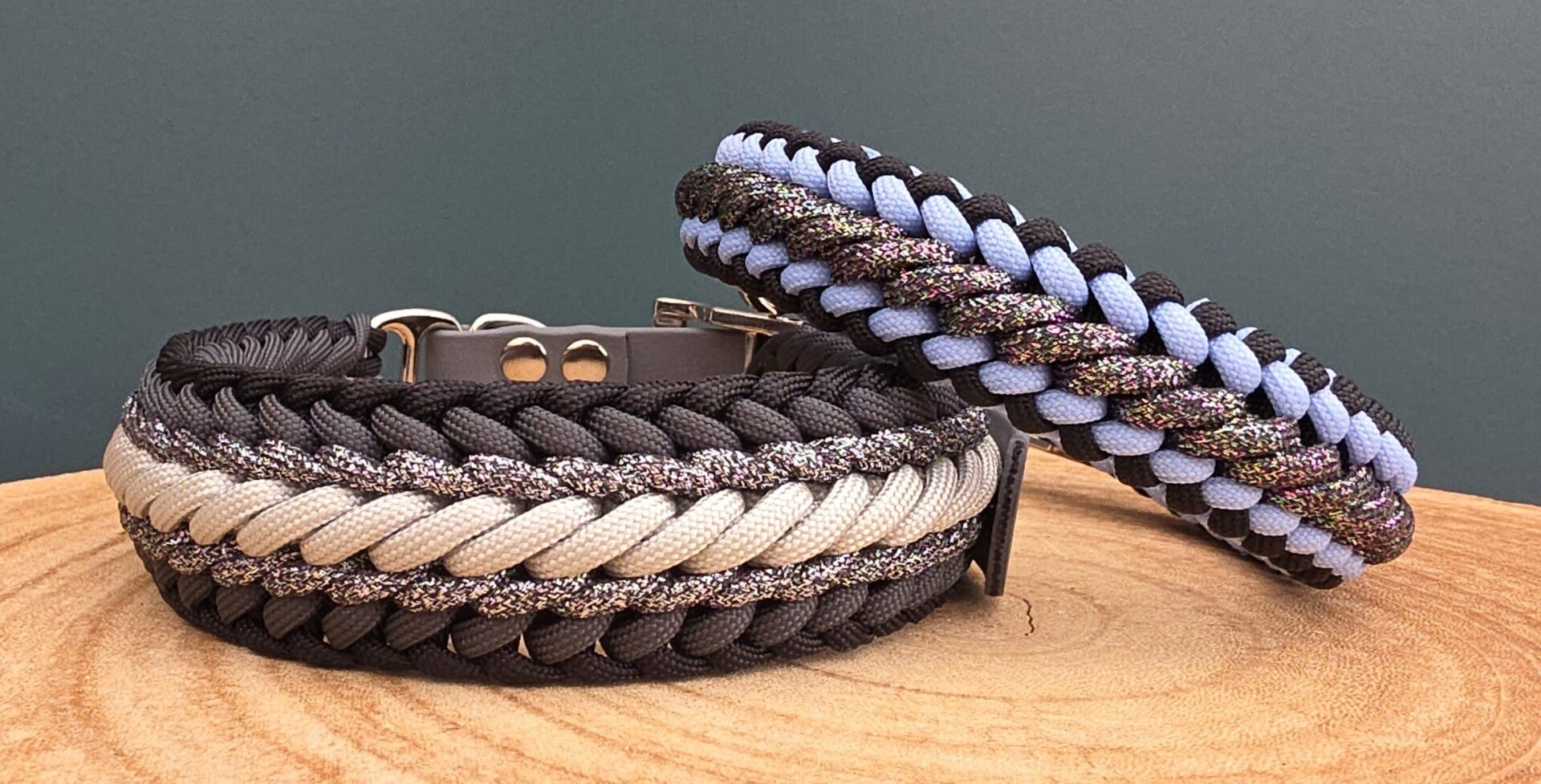 Je kunt kiezen uit onze vaste collectie of zelf je creativiteit de vrije loop laten en je halsband en/of riem zelf samenstellen. Hierbij kan je kiezen uit eindeloze opties en kleuren!