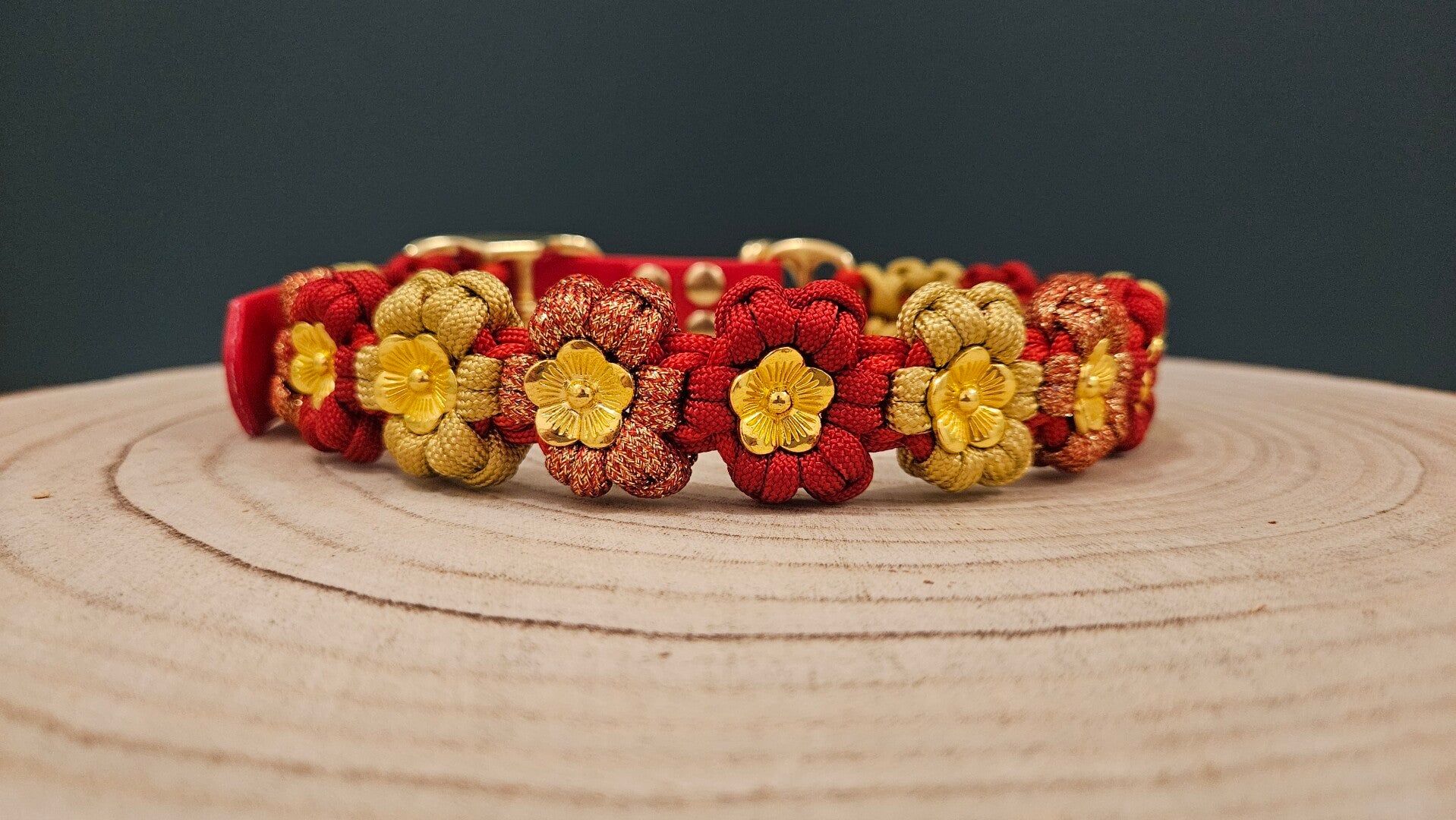 Wij zullen er daarna voor zorgen dat deze kleuren prachtig verwerkt worden in de halsband en dat de halsband afgewerkt wordt met een bijpassende biothane adapter.