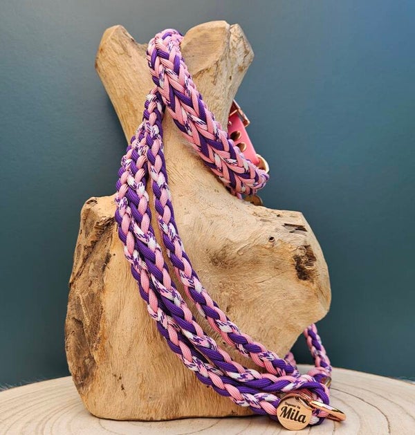 De riem uit de serie ' Aloha' bestaat uit 3 verschillende kleuren en is afgewerkt met een rosé gouden musketon. De riem is in meerdere lengtes verkrijgbaar waaronder verstelbare varianten.