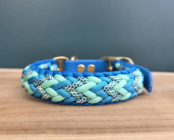 De mini-variant van de halsband 'Blue Curaçao' uit de lentecollectie! De halsband is ongeveer 2,5 cm breed en is daardoor geschikt voor de kleinere tot middelgrote hondenrassen.